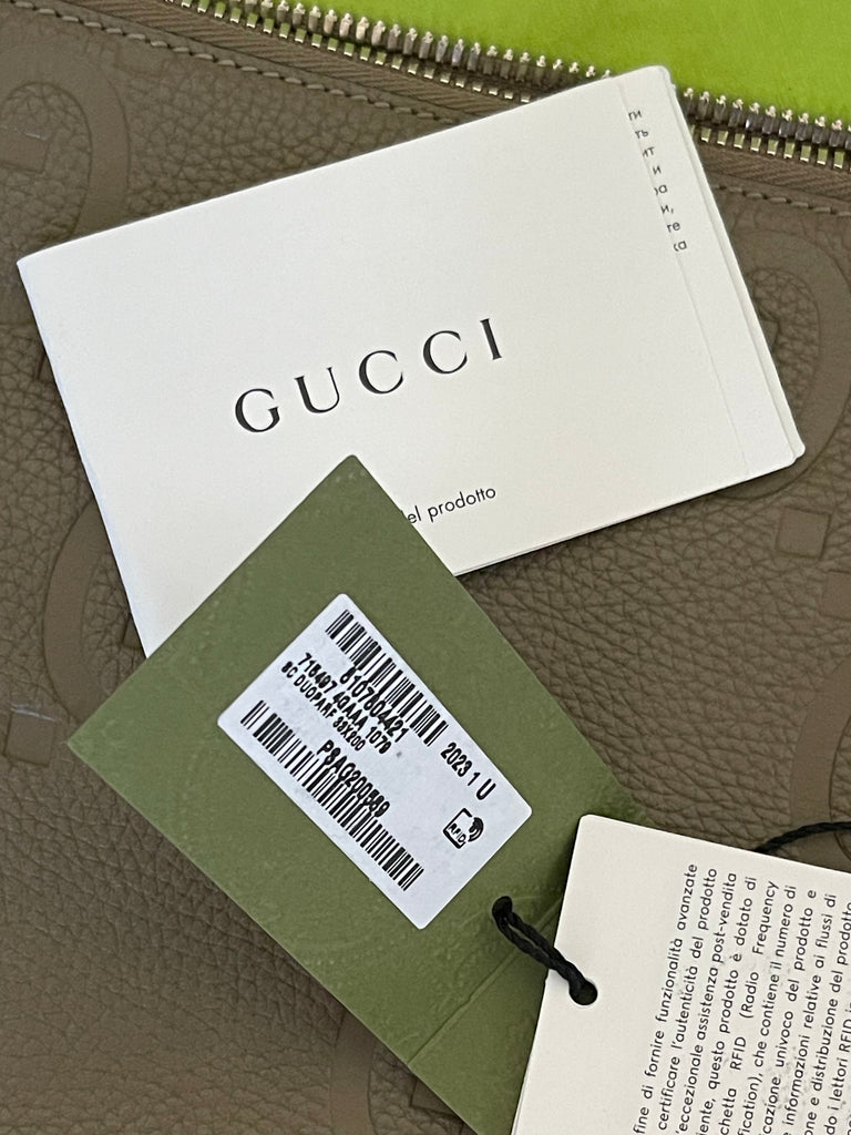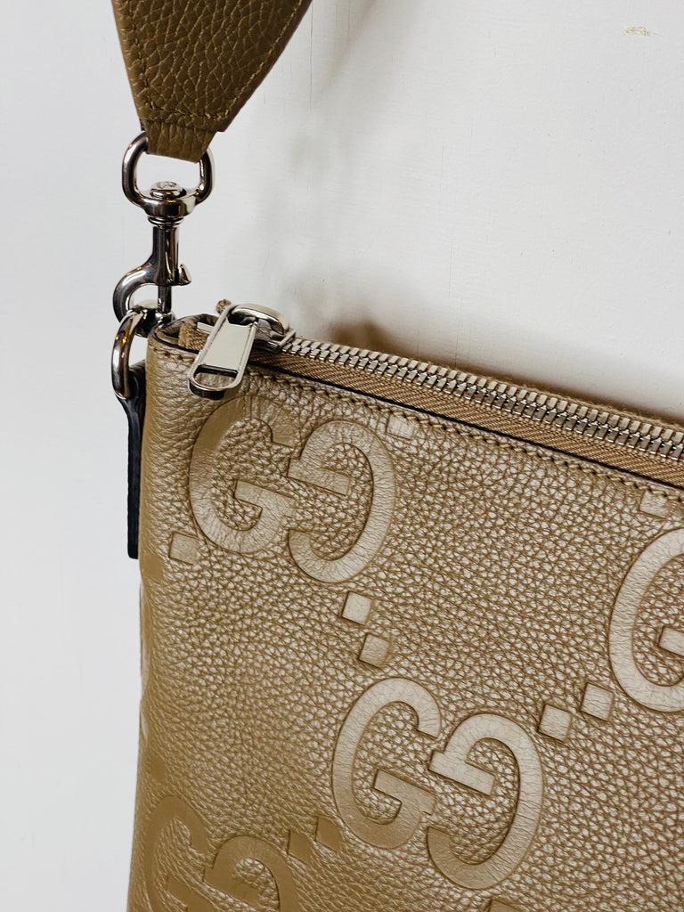 Gullfalleg og klassísk Gucci 2016-2023 Medium Jumbo GG Crossbody Messenger taska í taupe lit.