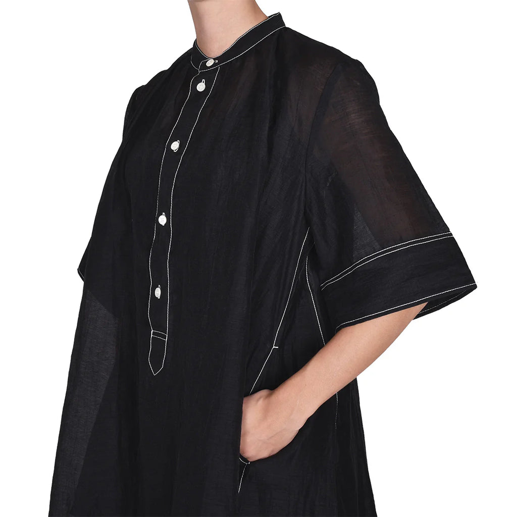 Sætur HOPE hör/polyester relaxed kjóll í svörtu.