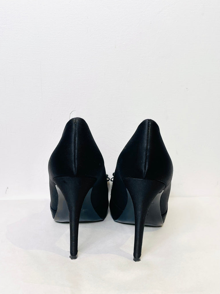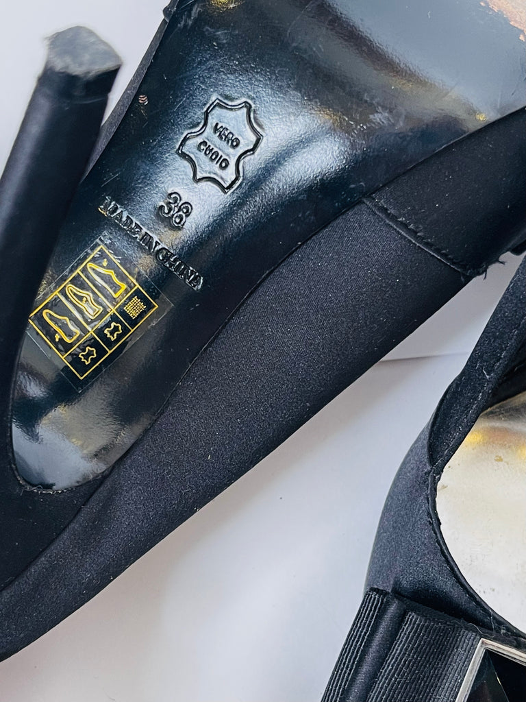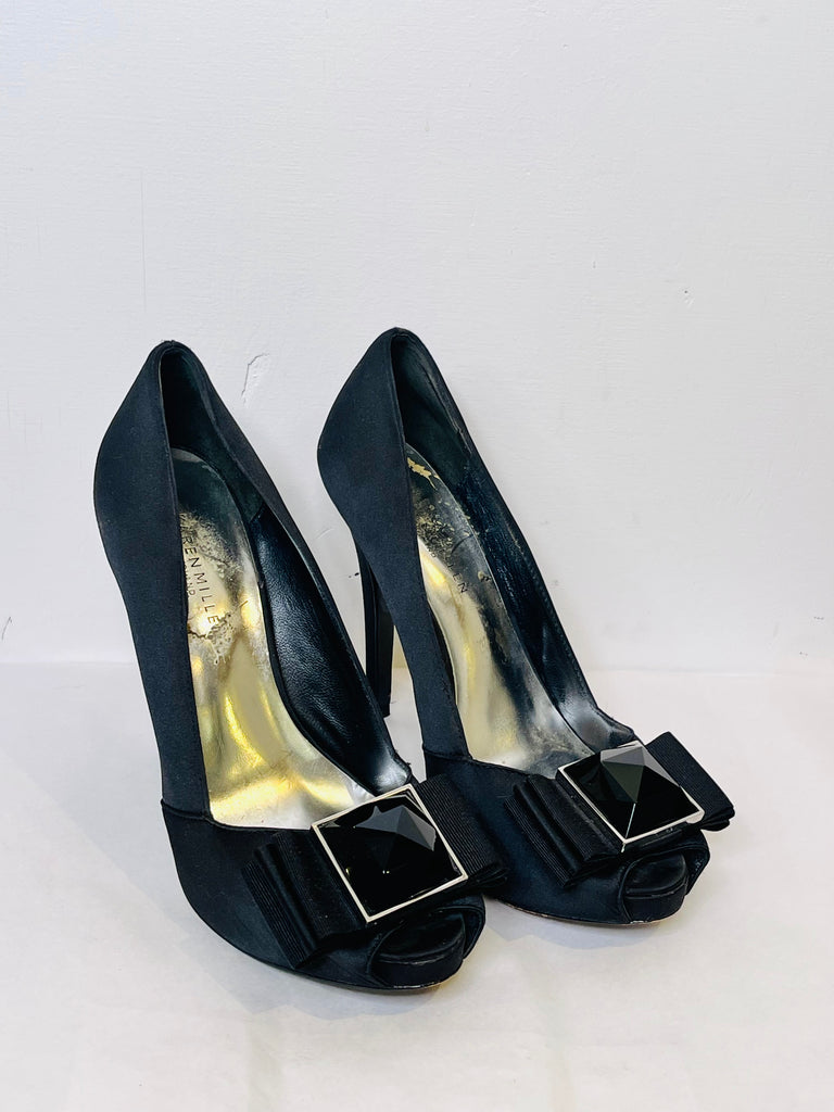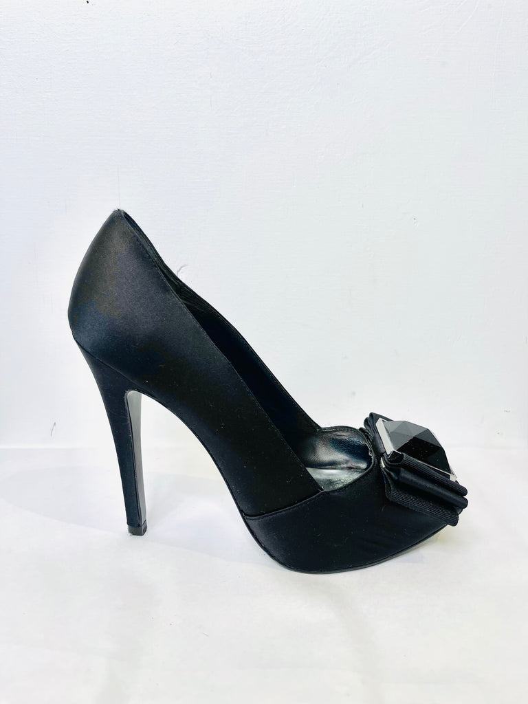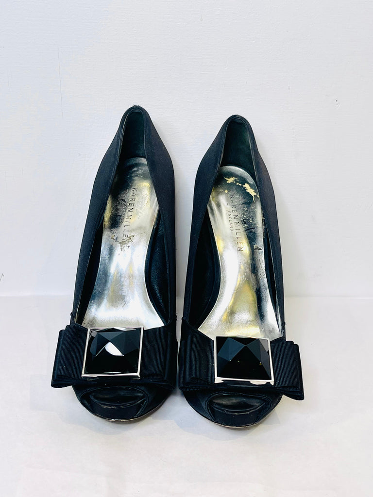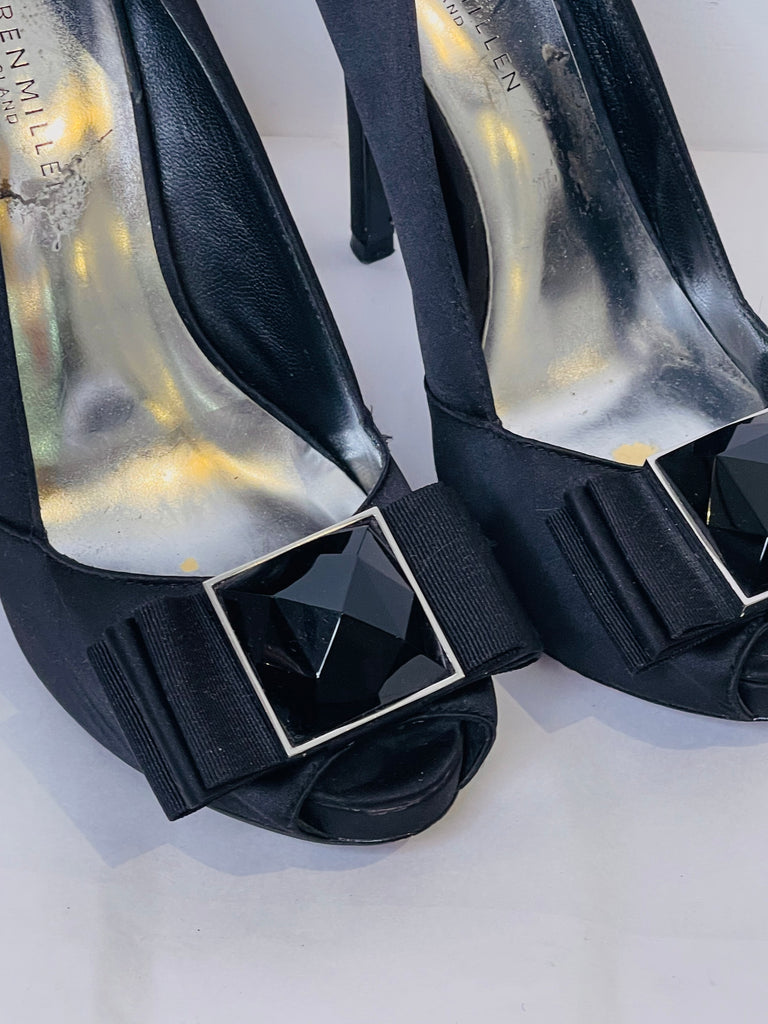 Æðislegir Karen Millen satin hælaskór m/stórum steini.