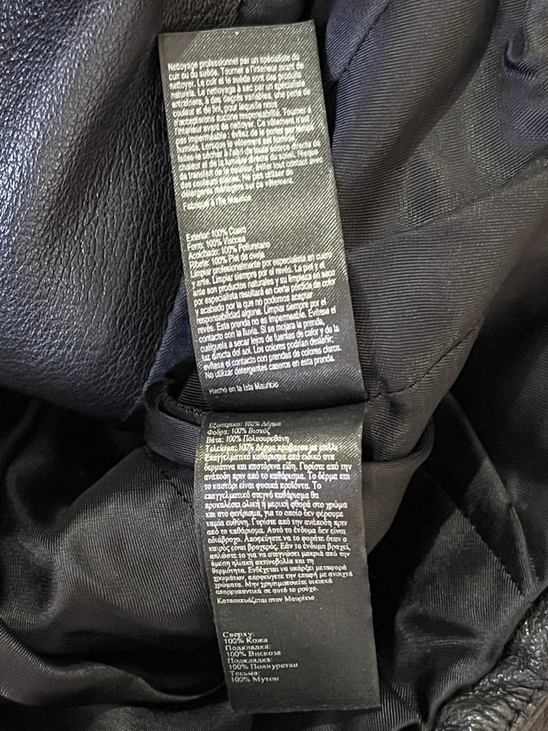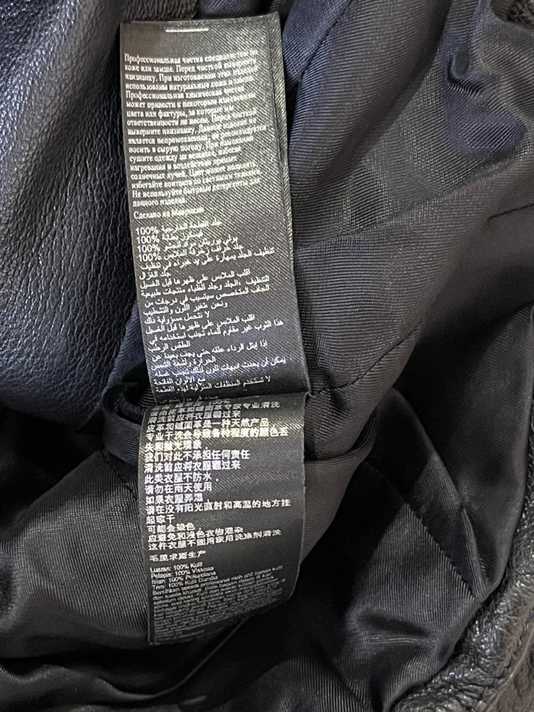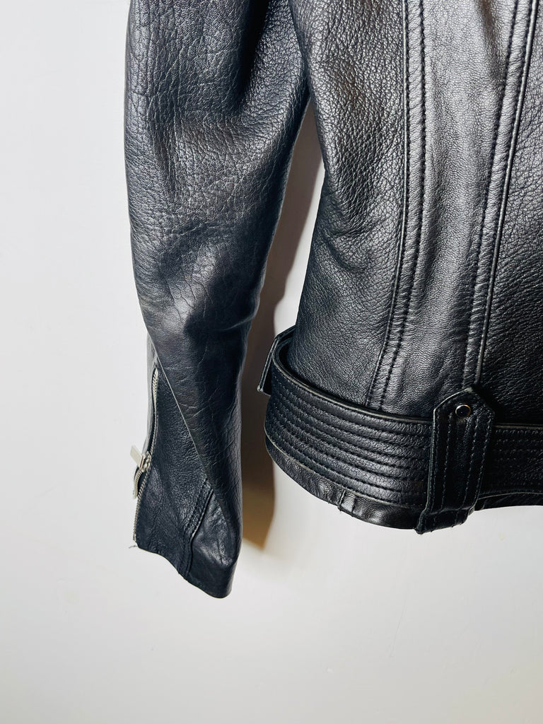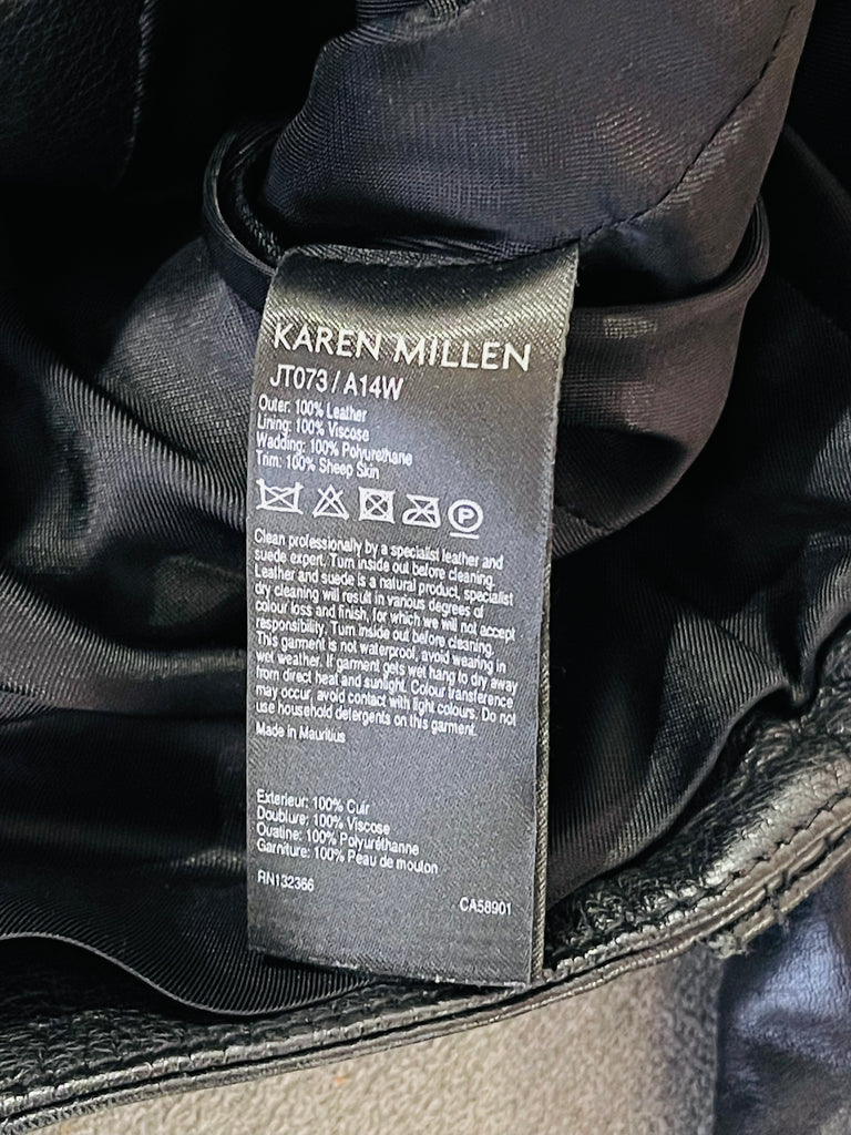 Fallegur Karen Millen svartur leðurjakki m/fur kraga.