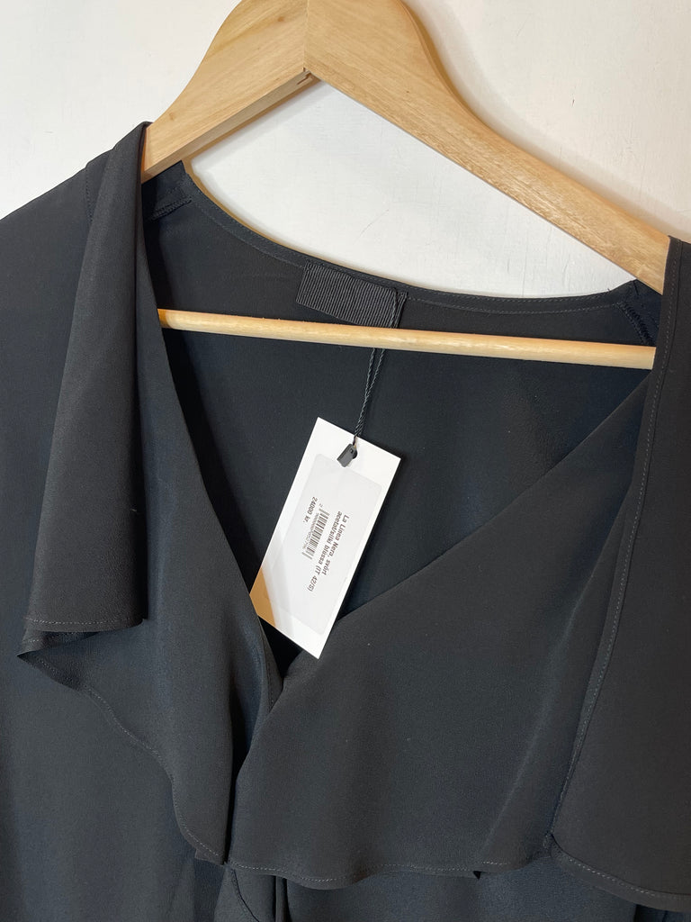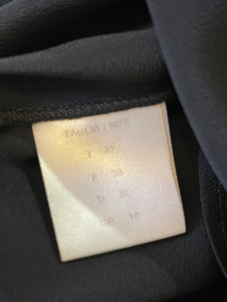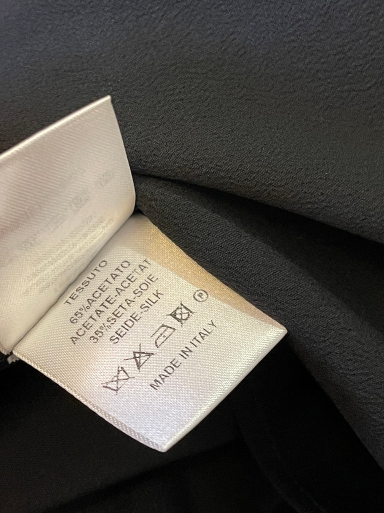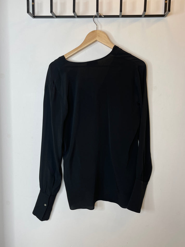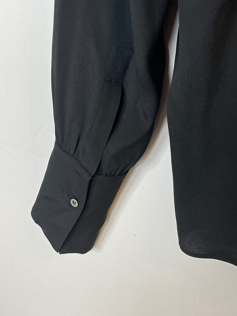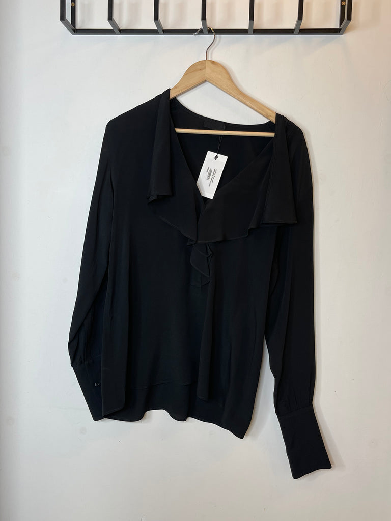 Gullfalleg La Linea Nera, svört pífu acetate/silki blússa.