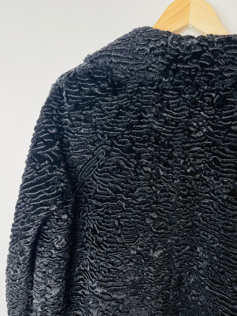 Gullfalleg S Max Mara faux fur alpaca/bómullar ullarkápa í svörtu.