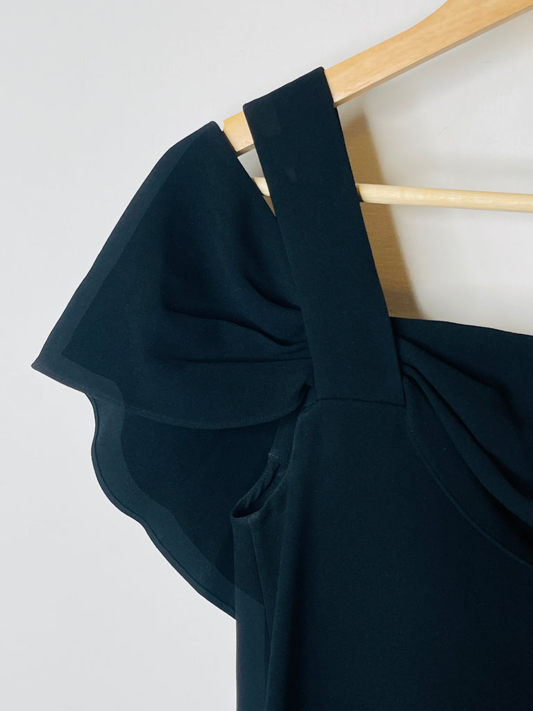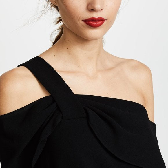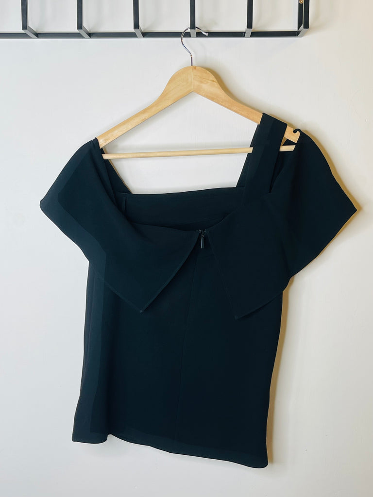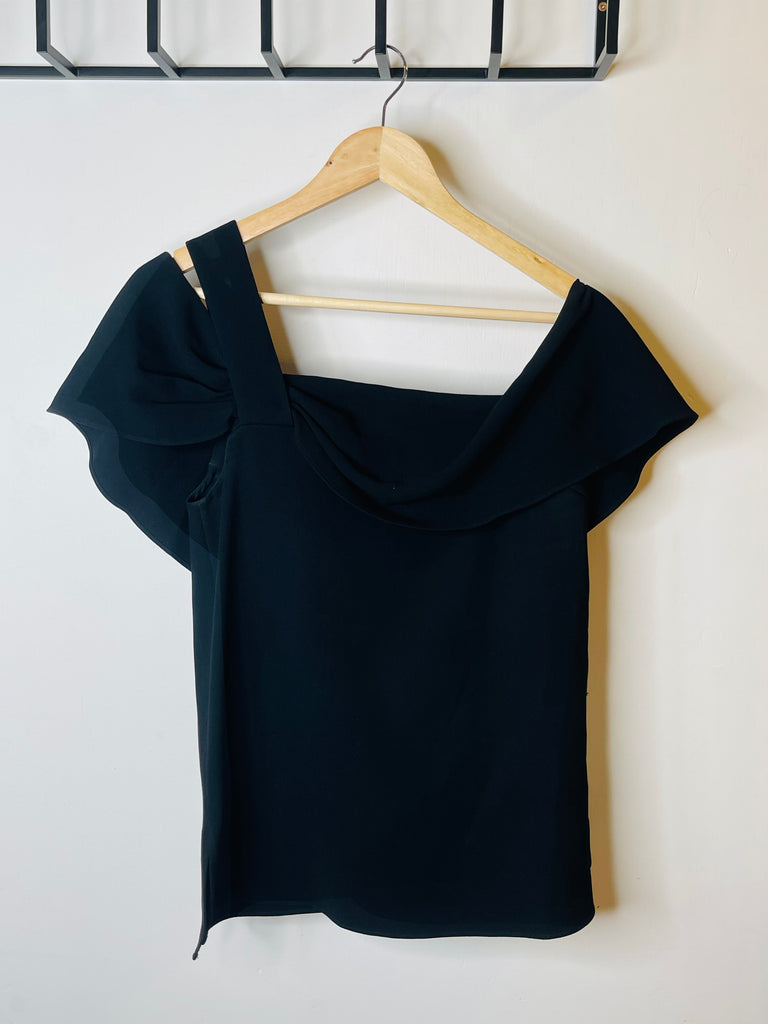 Æðislegur Tibi svartur draped off-shoulder toppur.