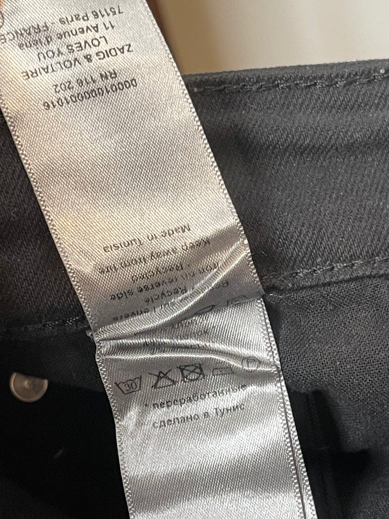 Sætar Zadig & Voltaire svartar gallabuxur m/rifu á hné.