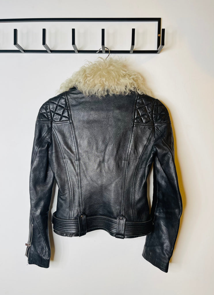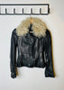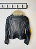 Fallegur Karen Millen svartur leðurjakki m/fur kraga.