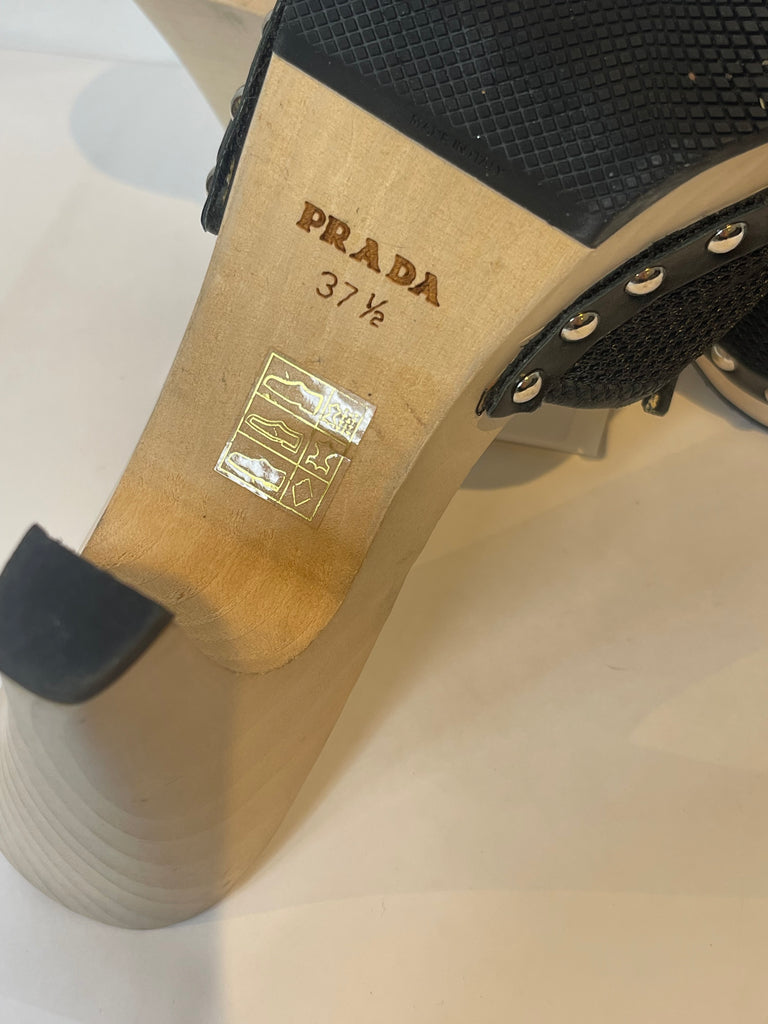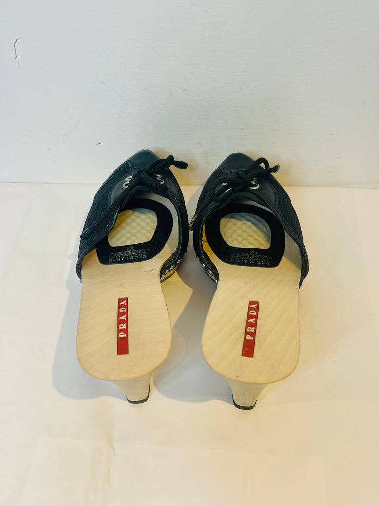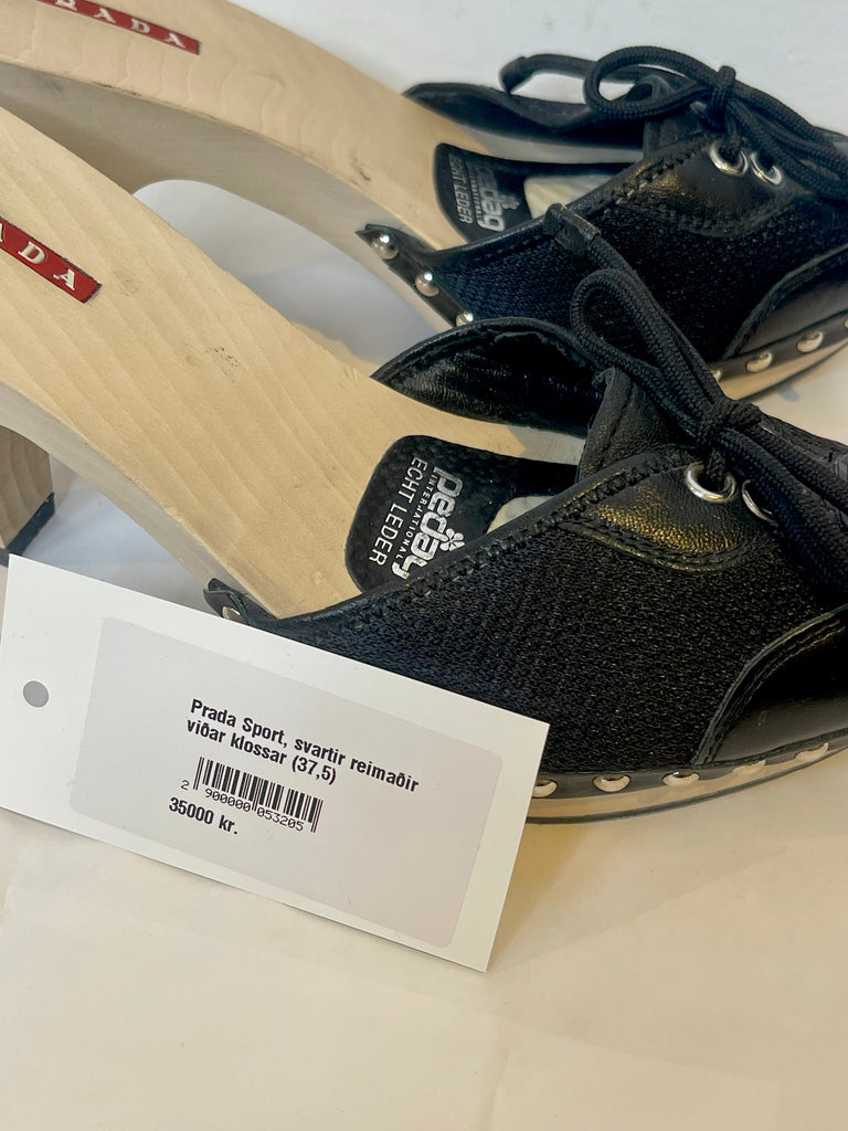 Gullfallegir Prada Sport svartir reimaðir stud viðar klossar.
