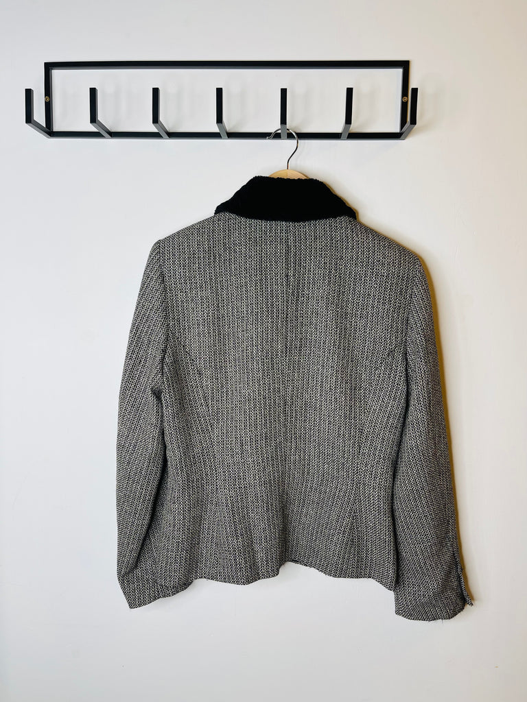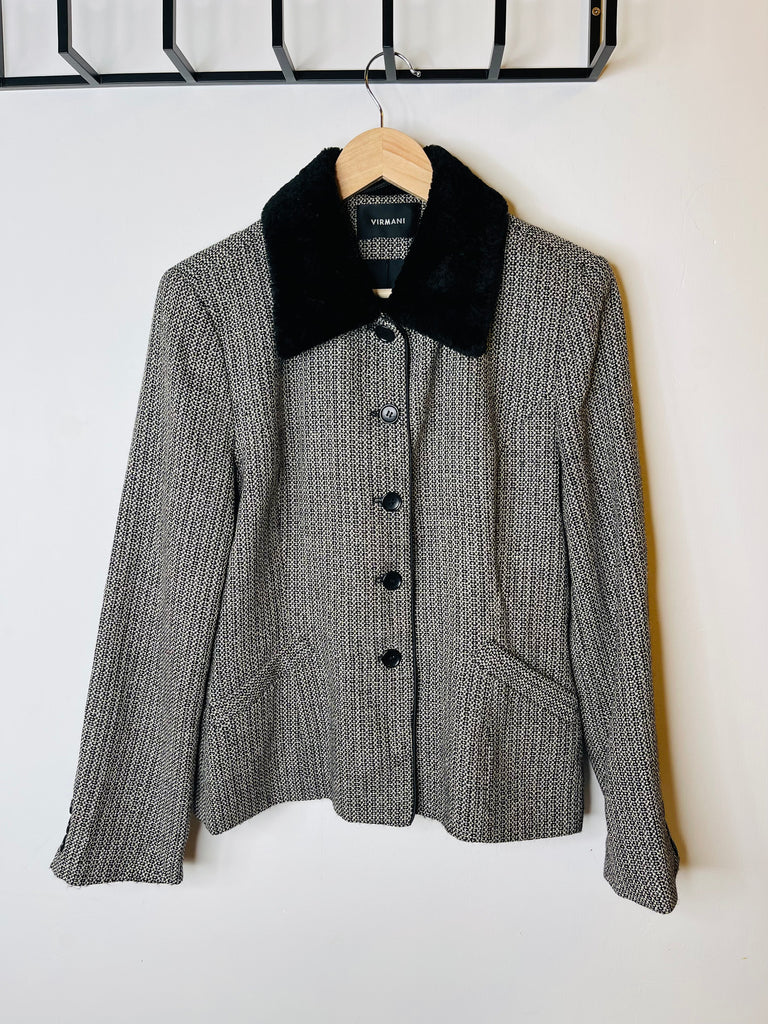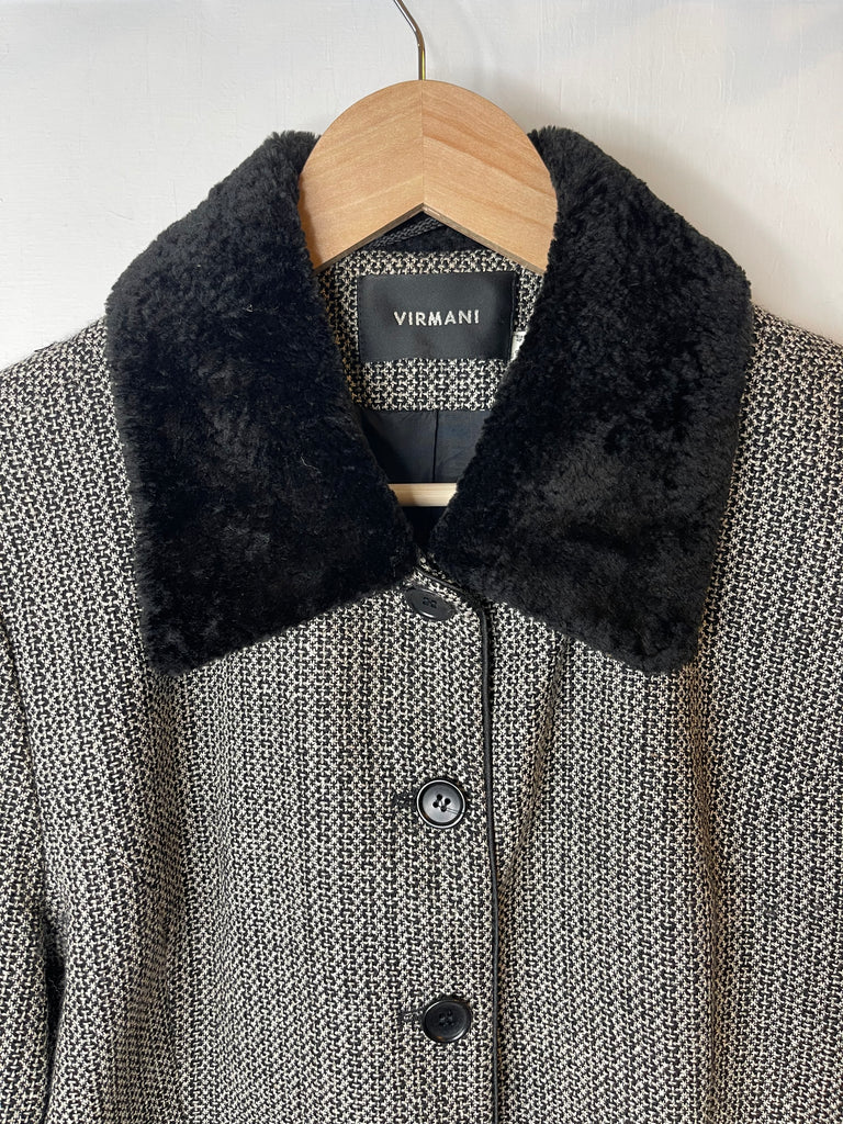 Virmani, vintage virgin wool blandaður jakki m/faux fur kraga (42/L)