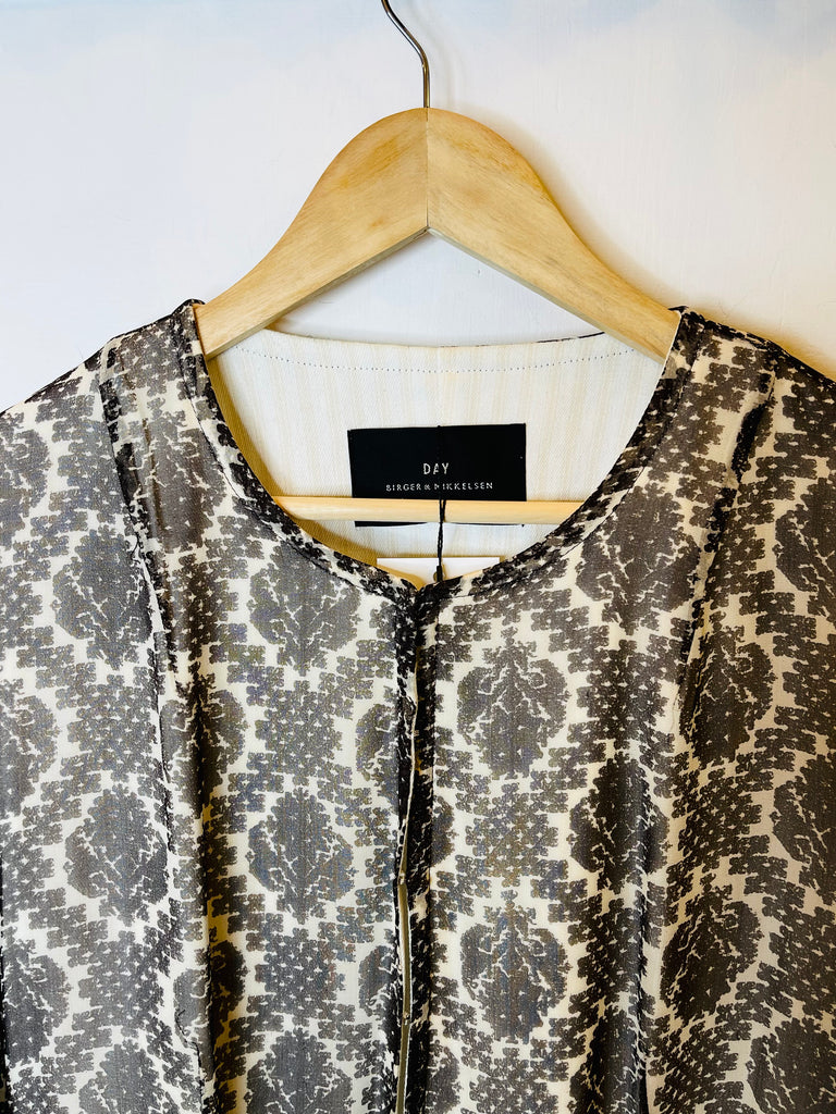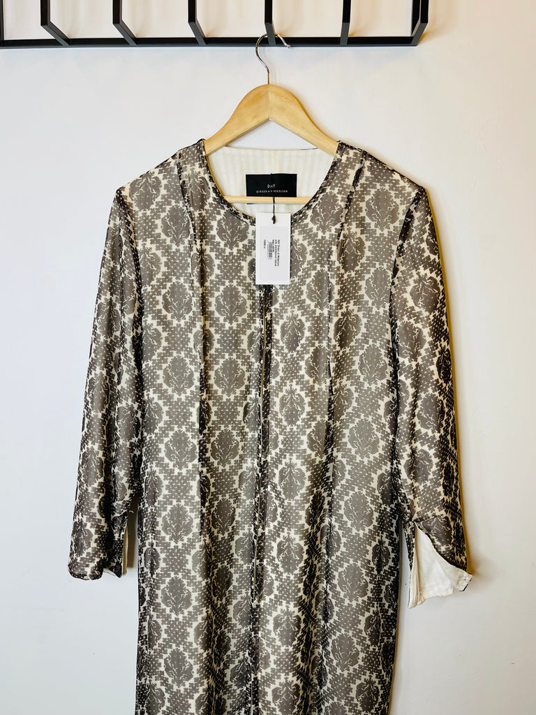 Gullfalleg DAY Birger et Mikkelsen silki prent kápa með bómullar fóðri.