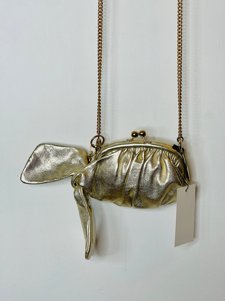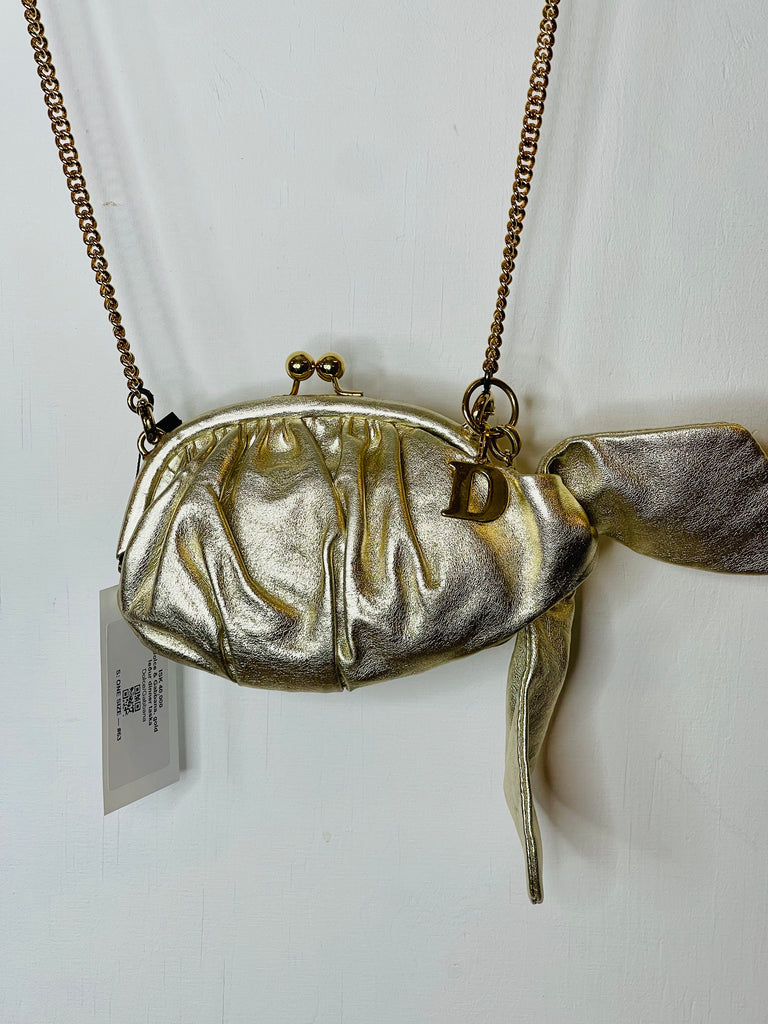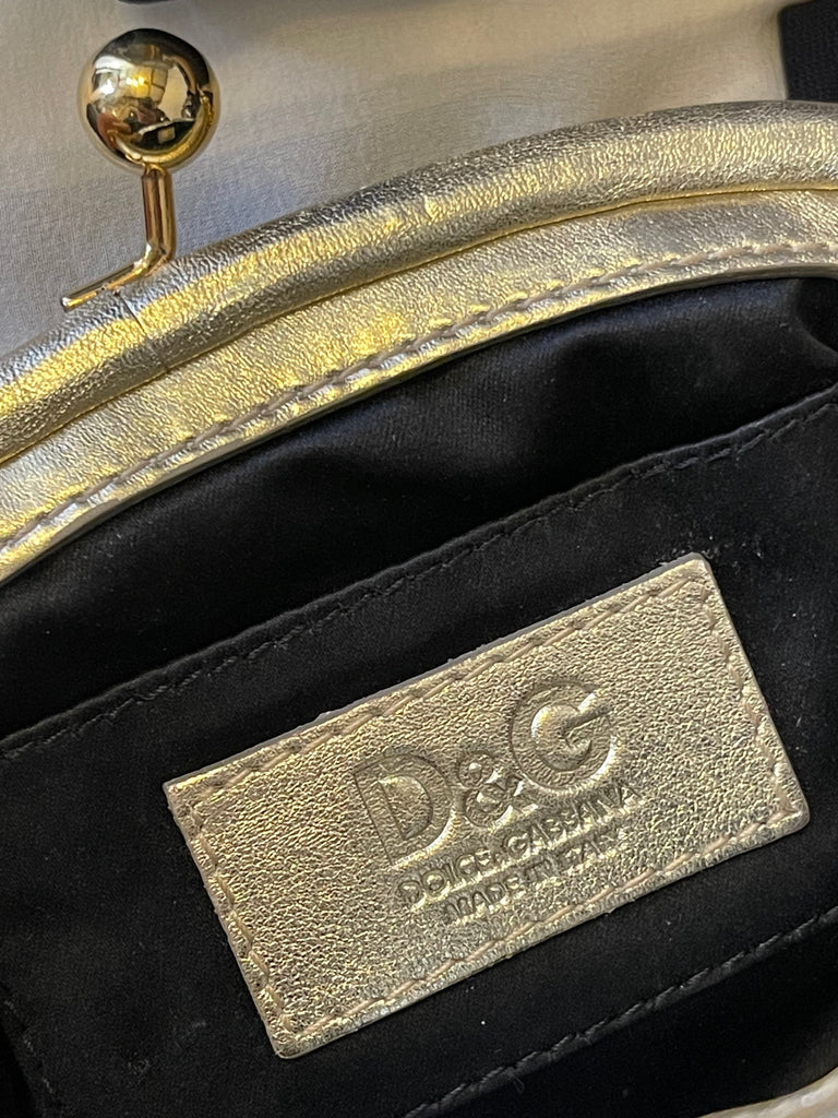 Gullfalleg og tímalaus Dolce & Gabbana gold leður crossbody dinner taska sem dressar upp öll outfit.