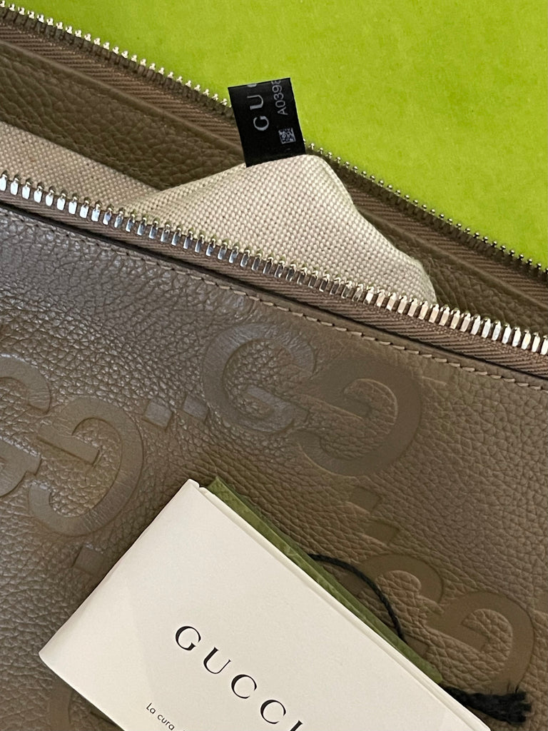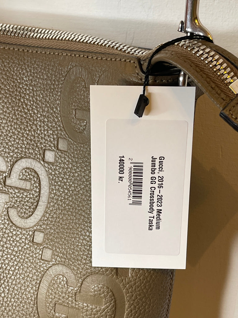 Gullfalleg og klassísk Gucci 2016-2023 Medium Jumbo GG Crossbody Messenger taska í taupe lit.