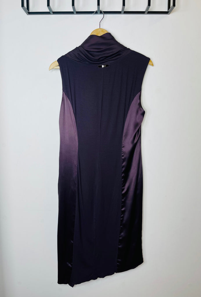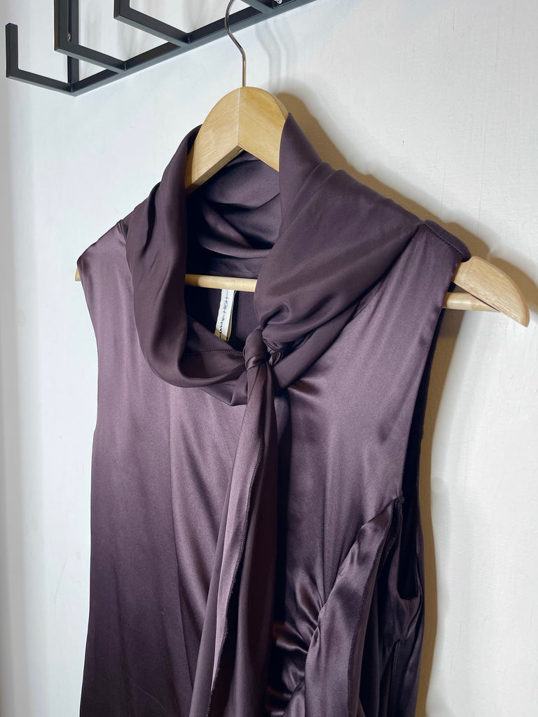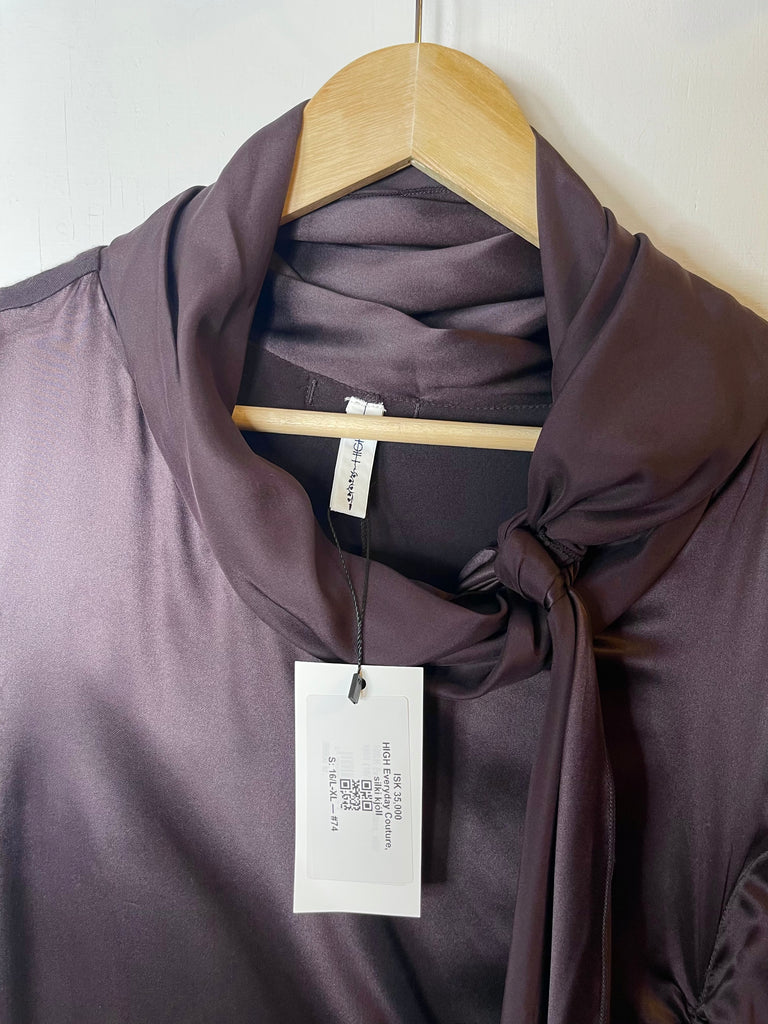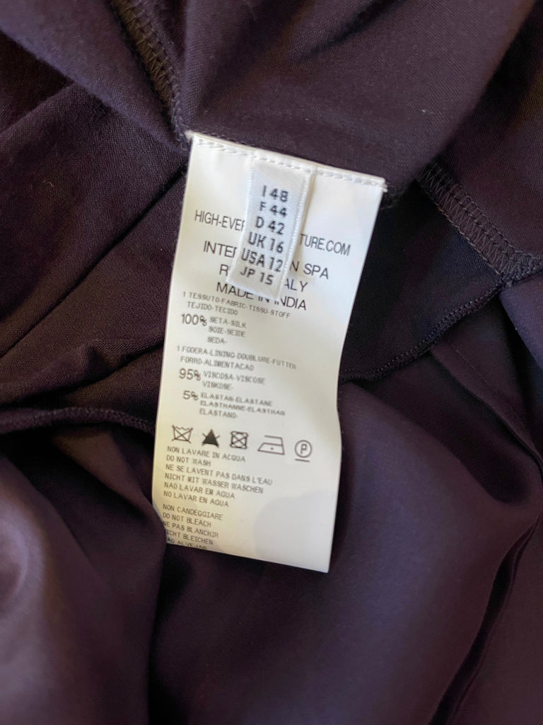 Gullfallegur HIGH Everyday Couture súkkulaði brúnn draped silki kjóll.