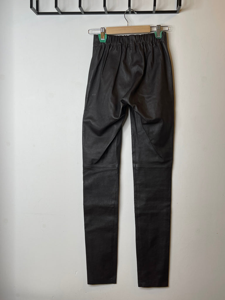 Hinar fallegu og klassísku Joseph leður stretch leggings buxur í brúnu.