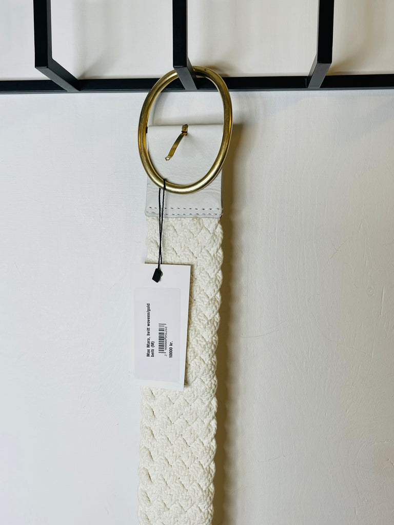 Max Mara, hvitt leður woven canvas/gold belti (M)