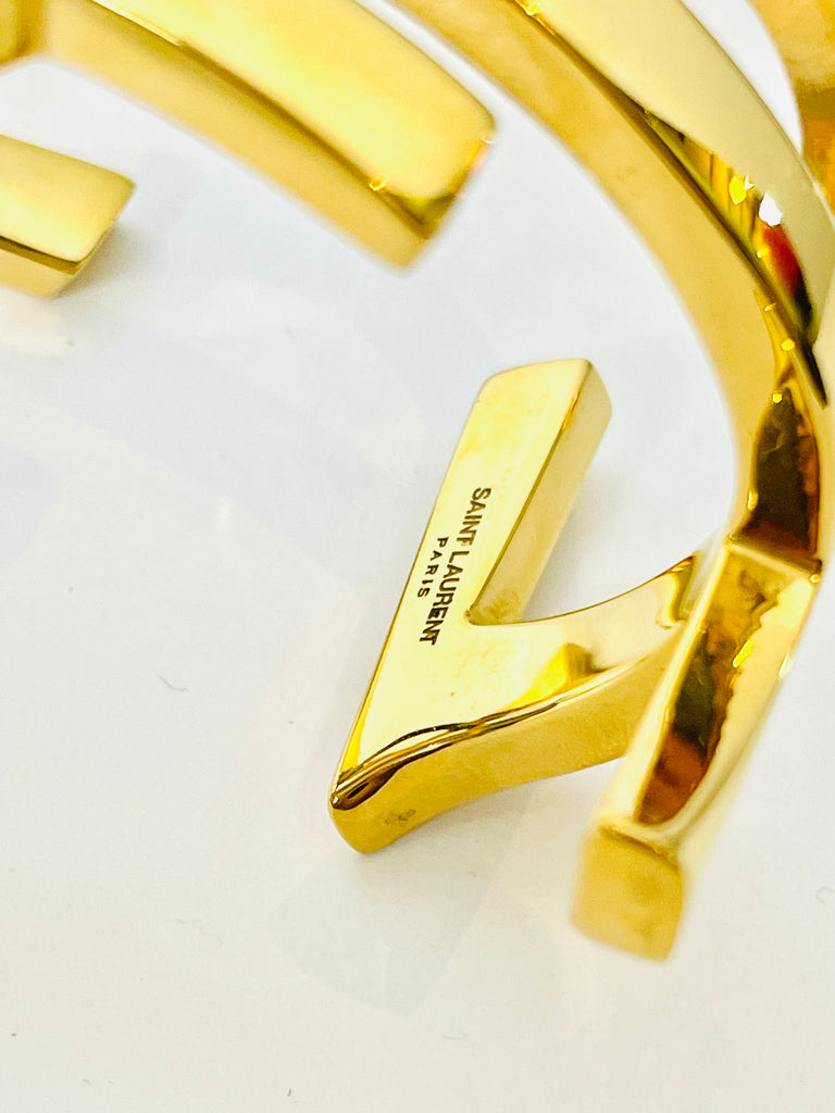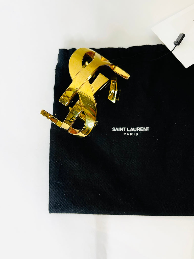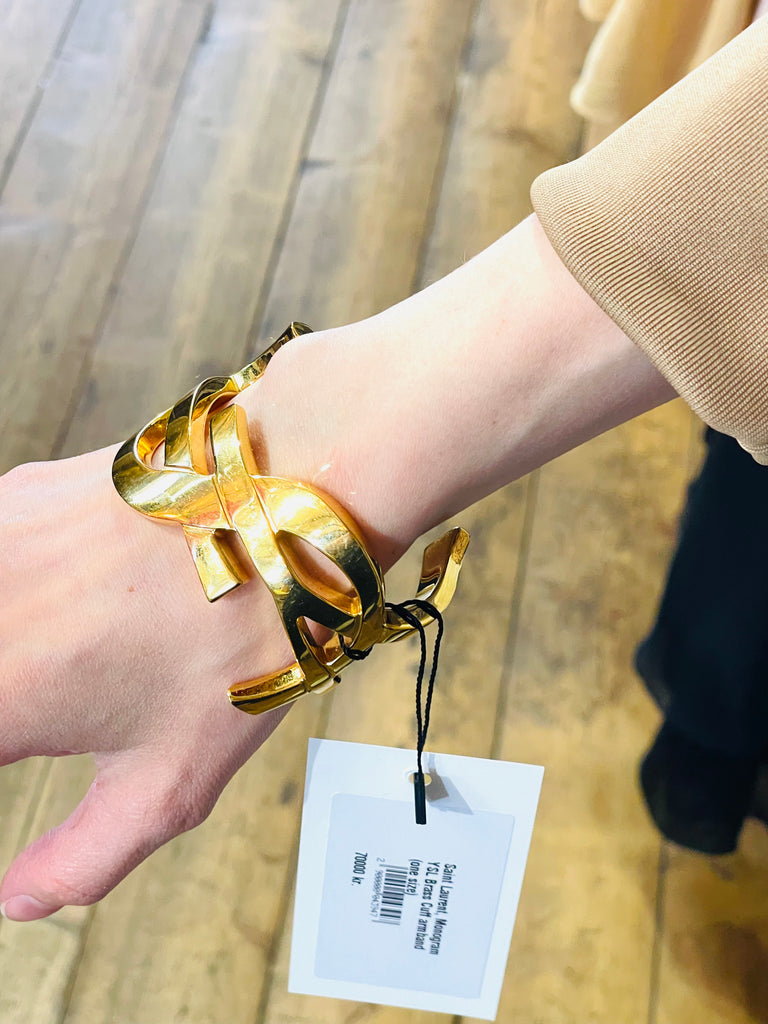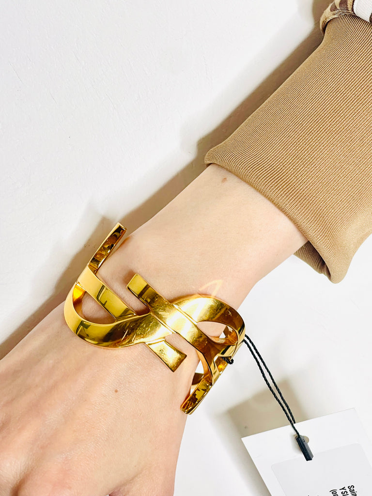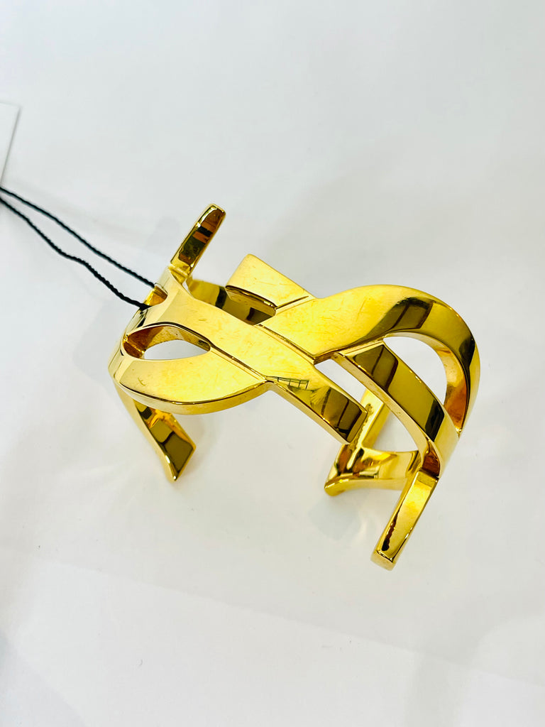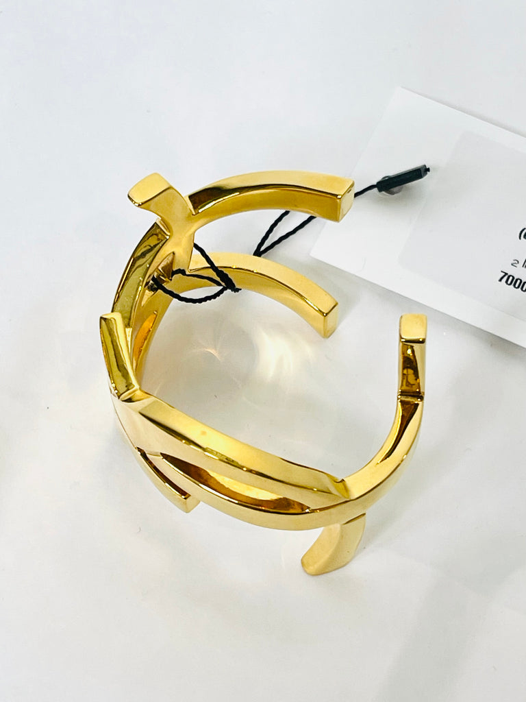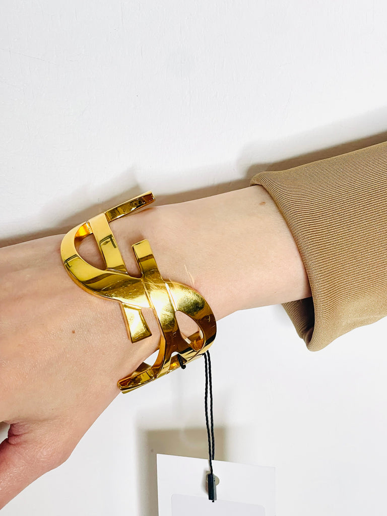 Gullfallegt og klassískt Saint Laurent Monogram YSL Brass Cuff armband.