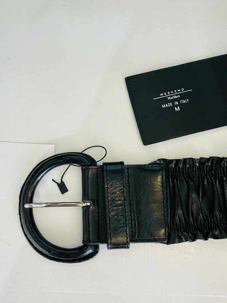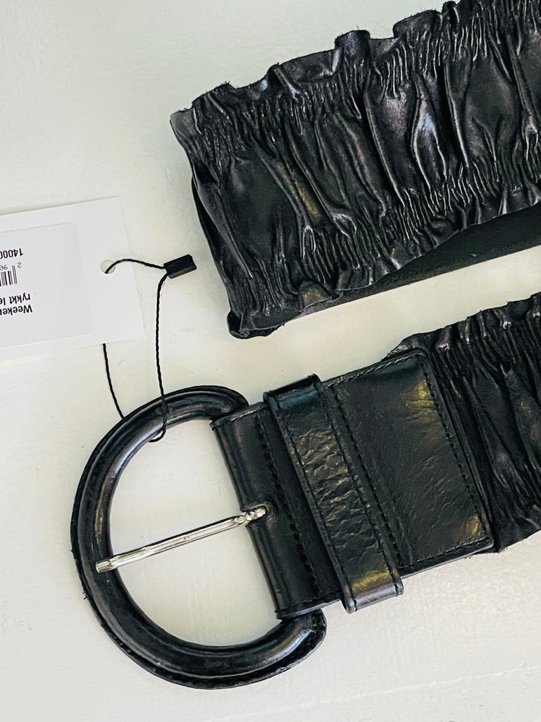 Weekend Max Mara, svart rykkt leður stretch belti (M)