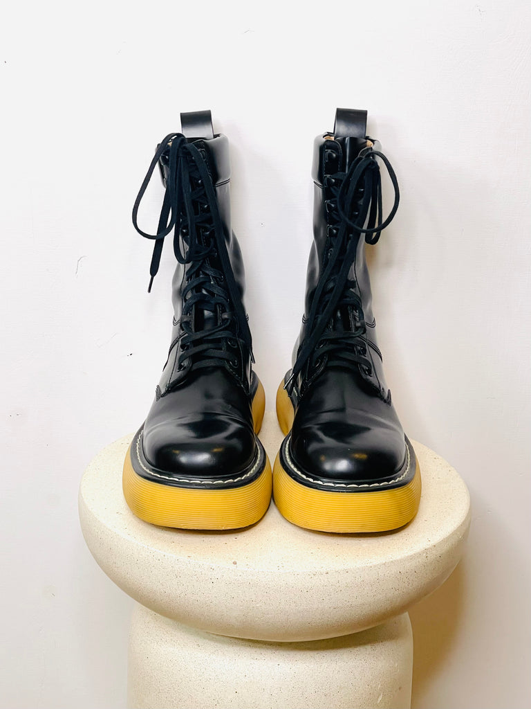 Gullfallegir Bottega Veneta, patent leður stígvél/boots.