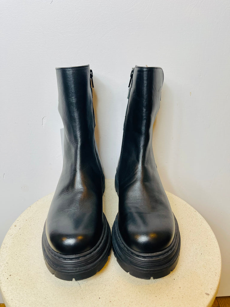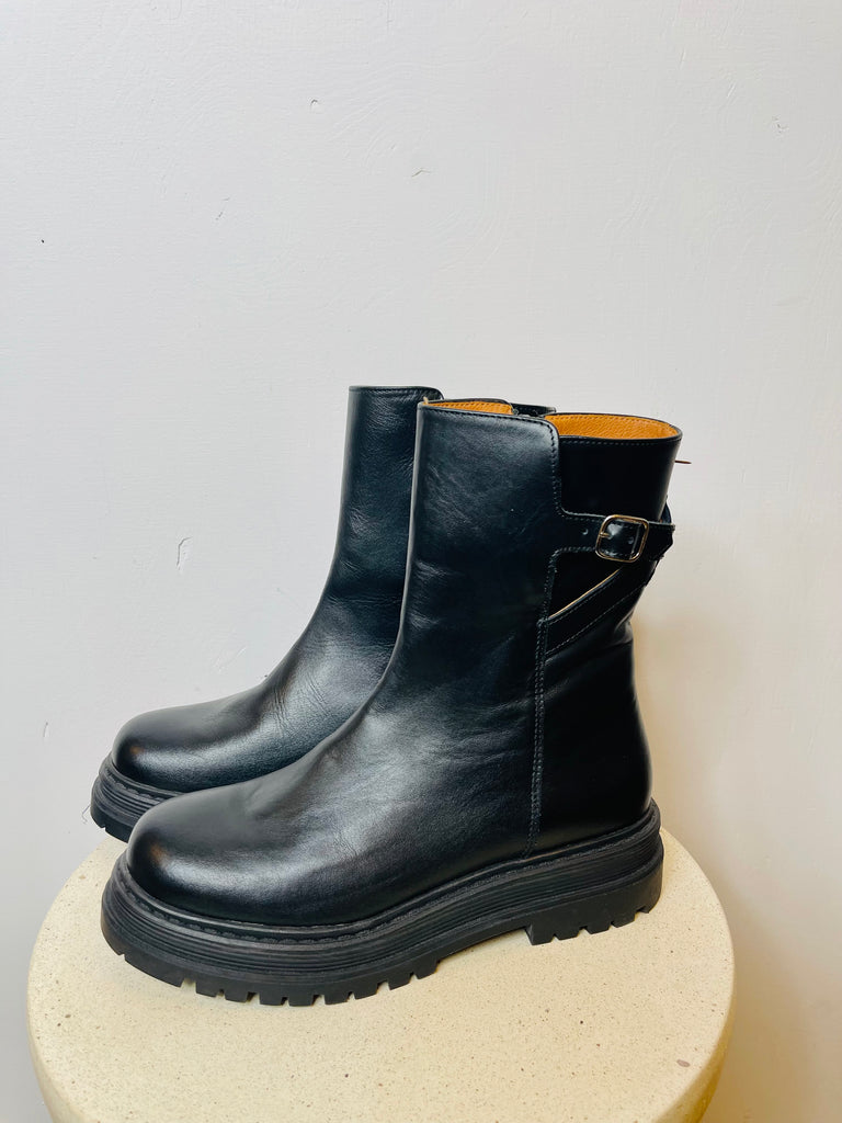 Gullfalleg Claudio Perlot svört leður stígvél.